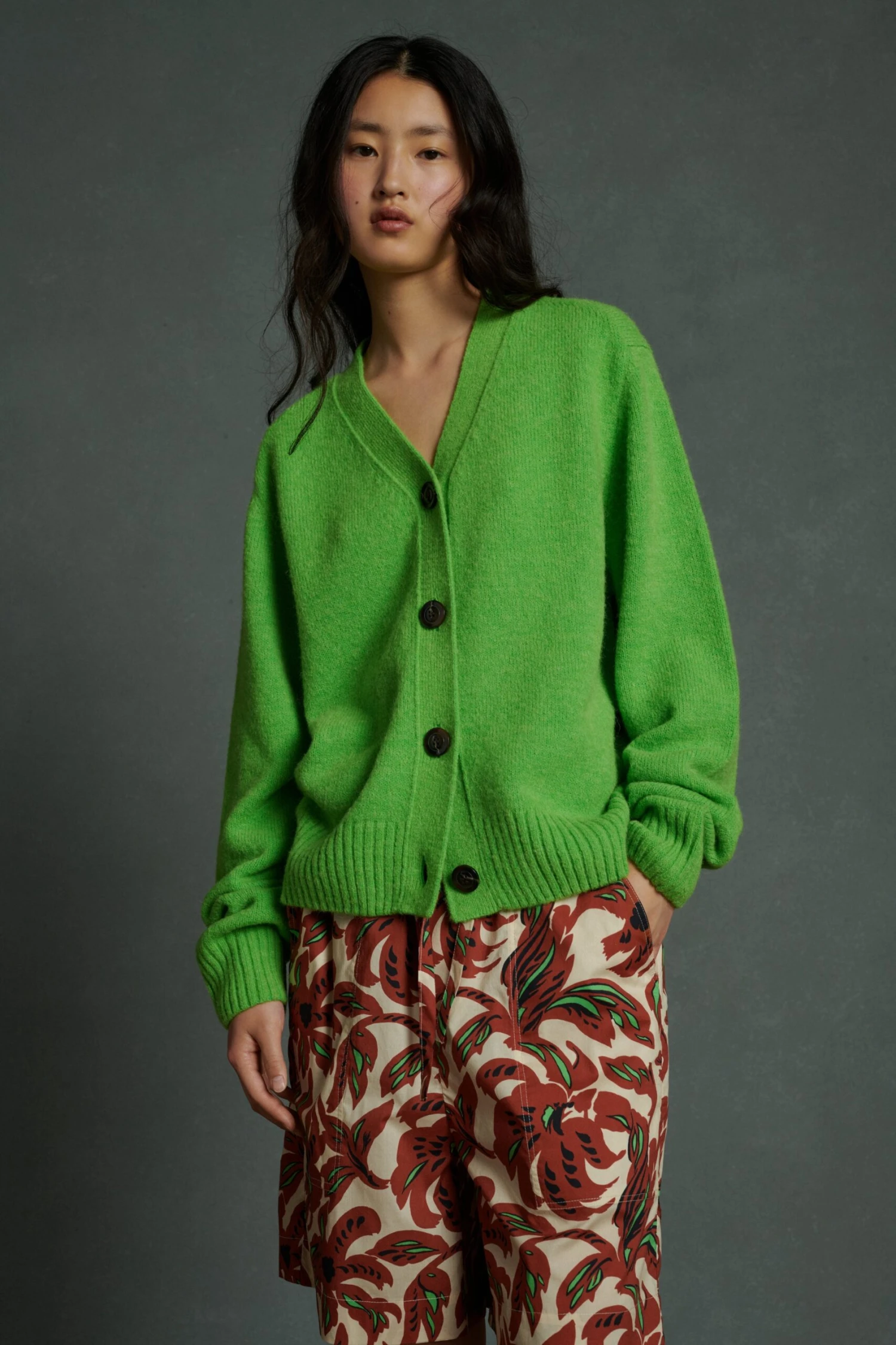 ALESIA est un cardigan oversize en laine mĂ©langĂ©e Ă large encolure en V. Il est tricotĂ© dans une maille incontournable du vestiaire Soeur, Ă la main duveteuse (poil long laine d’Alpaga). Sa couleur exceptionnelle verte fluo a Ă©tĂ© dĂ©veloppĂ©e en exclusivitĂ© pour apporter une touche vitaminĂ©e Ă notre collection d’Ă©tĂ©.