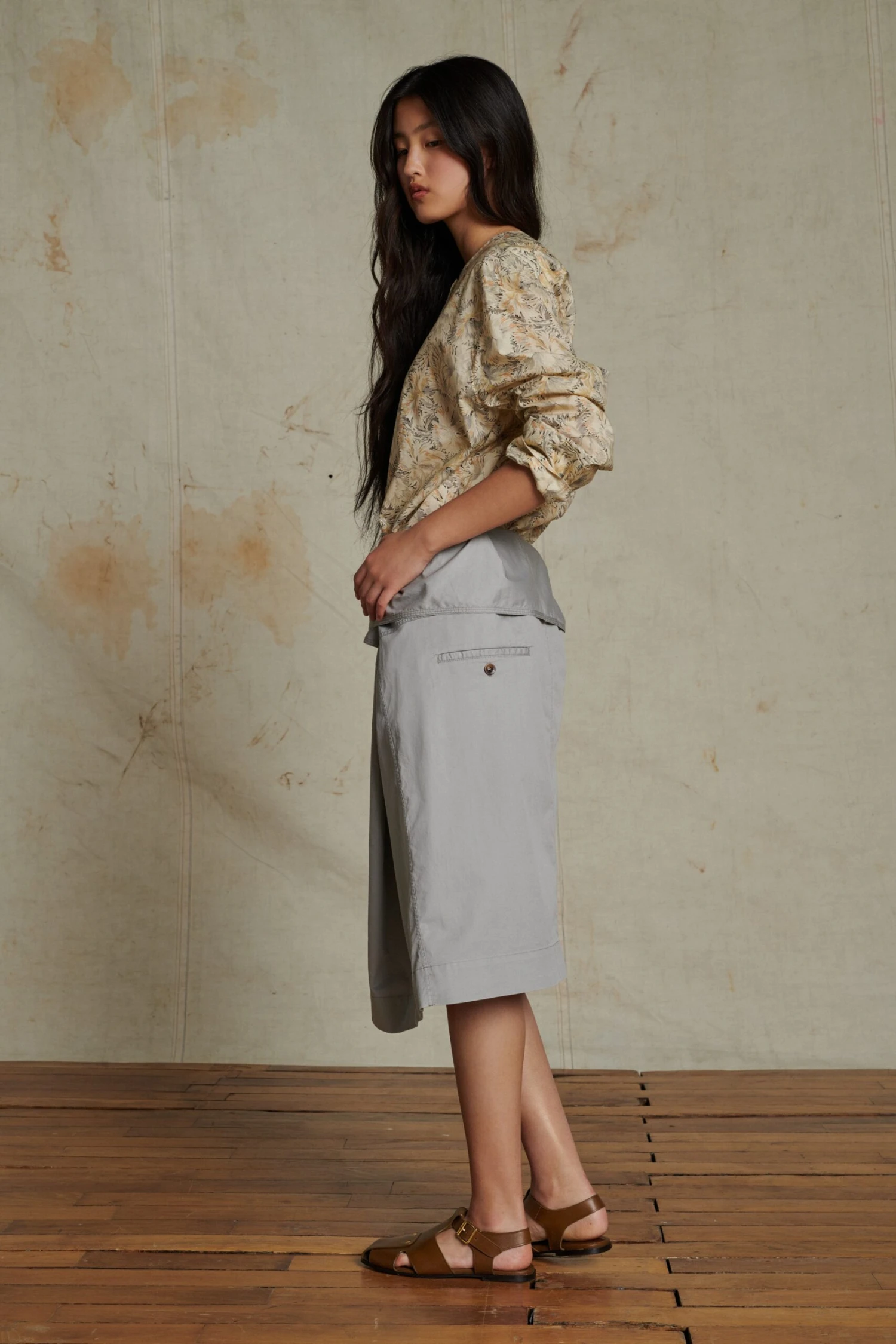 ALASKA est une blouse oversize à col rond. Des revers au large permettent de replier la manche. La popeline de coton, légère et fraiche, est idéale pour l’été. L’imprimé « Bloom » aux nuances pastel se mélangera avec douceur à un pantalon beige, gris ou blanc.