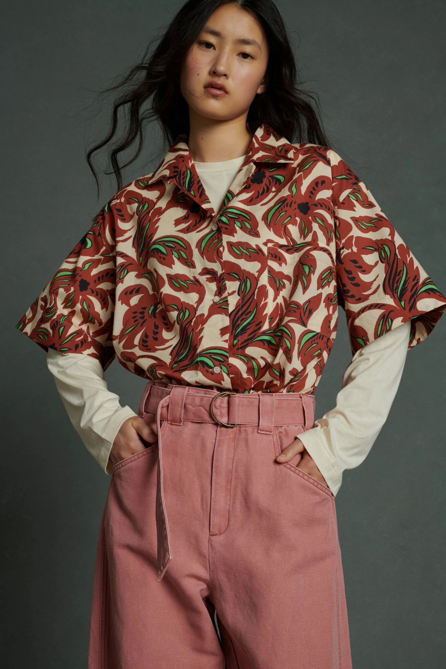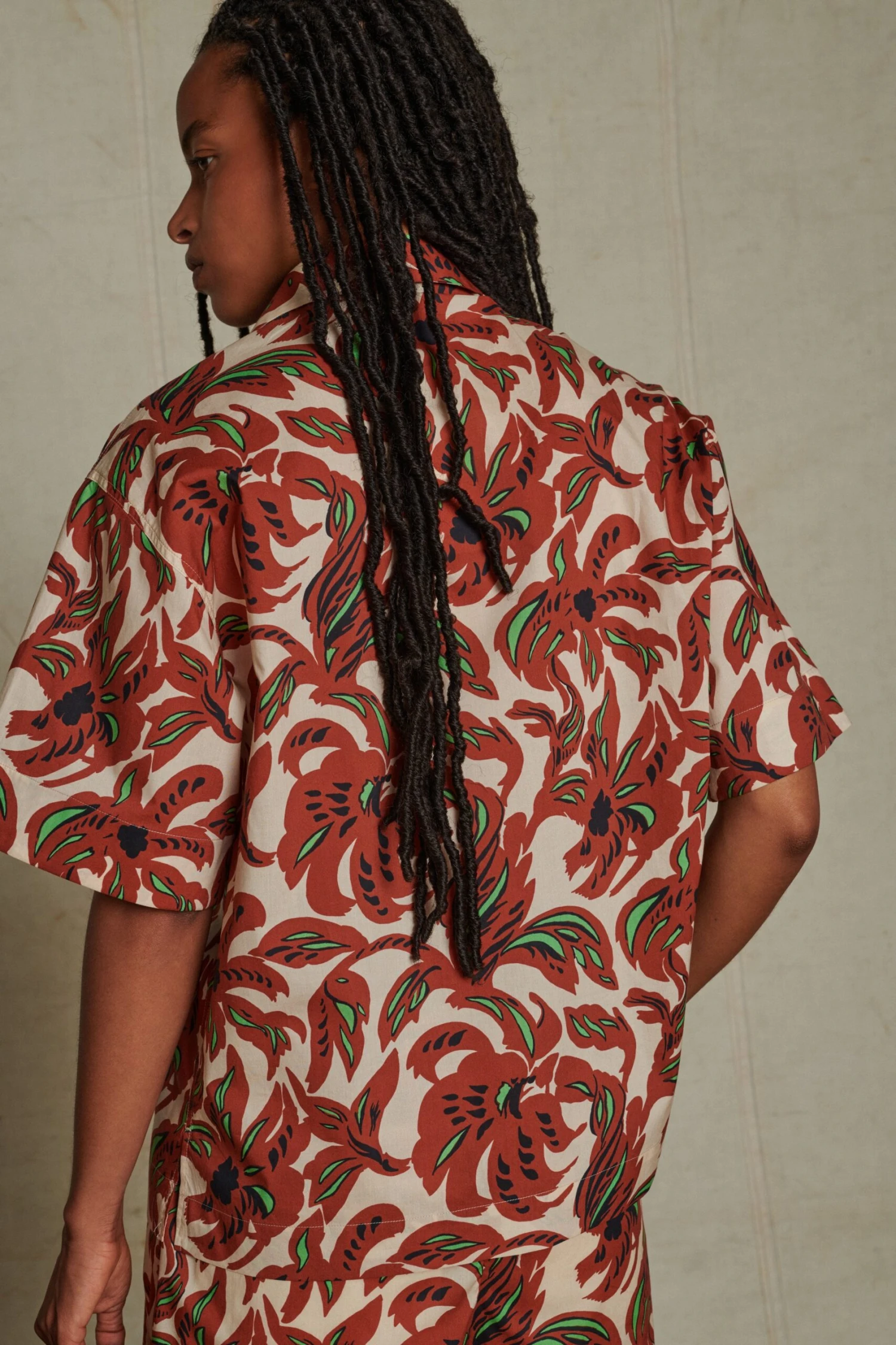 Chemise manches courtes en popeline de coton imprimée « Fiori »