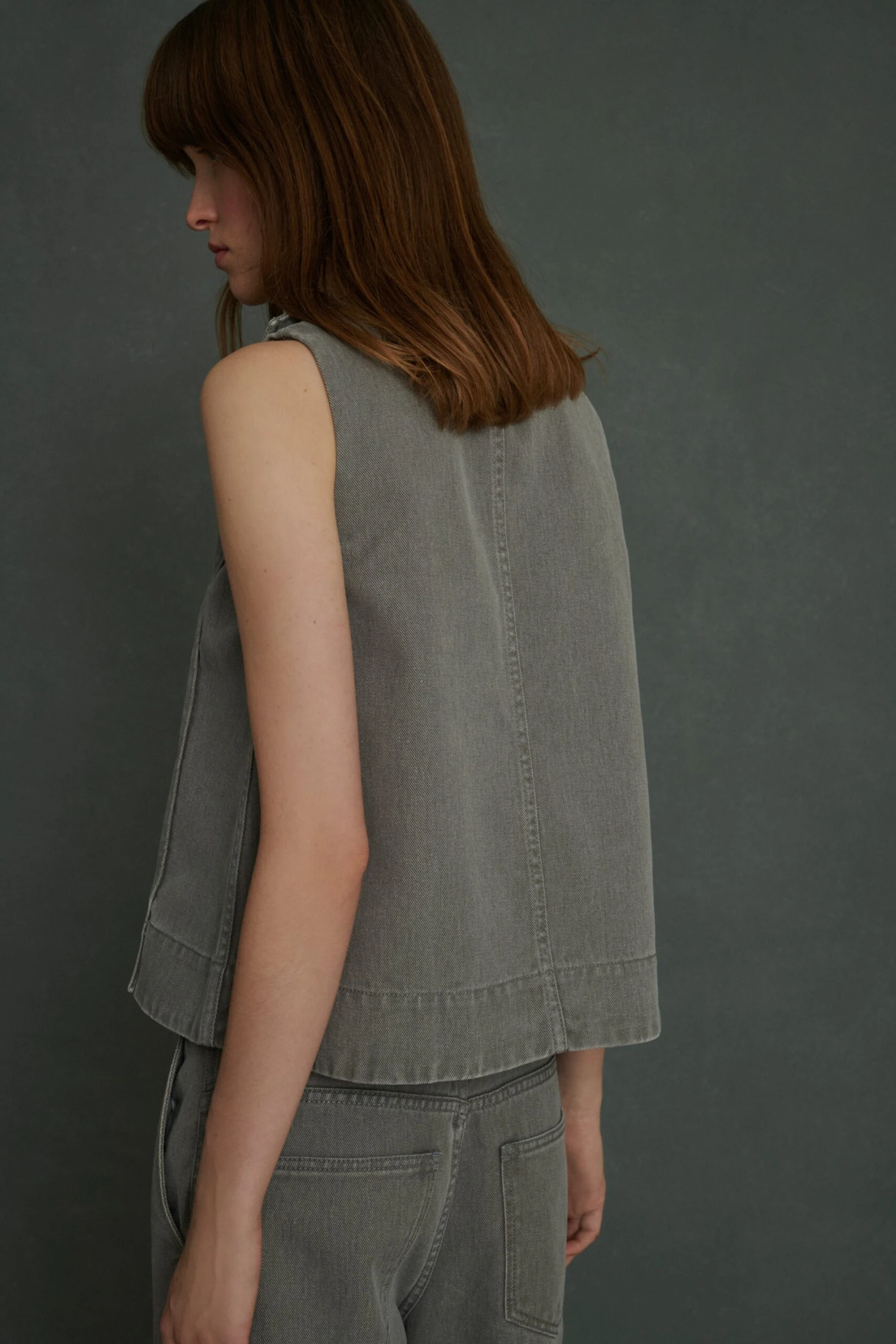 Blouse sans manches en denim souple gris clair