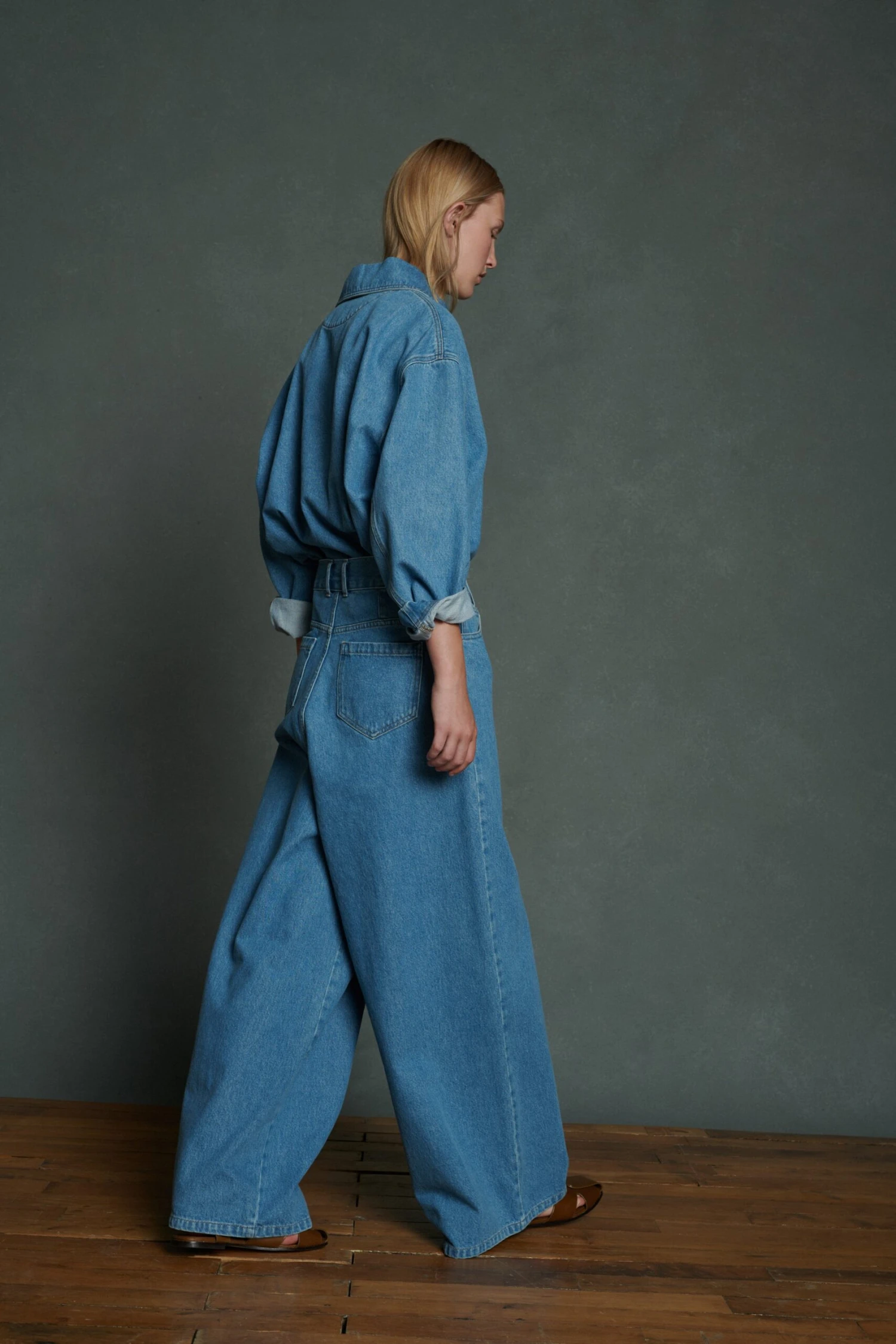 AUSTIN est un top en denim souple, inspiré des vareuses traditionnellement en toile épaisse. La toile de denim bleu clair est délavée, accentuant son allure vintage. A associer au jean ALEXIS ou au short AKI pour un total look rétro.