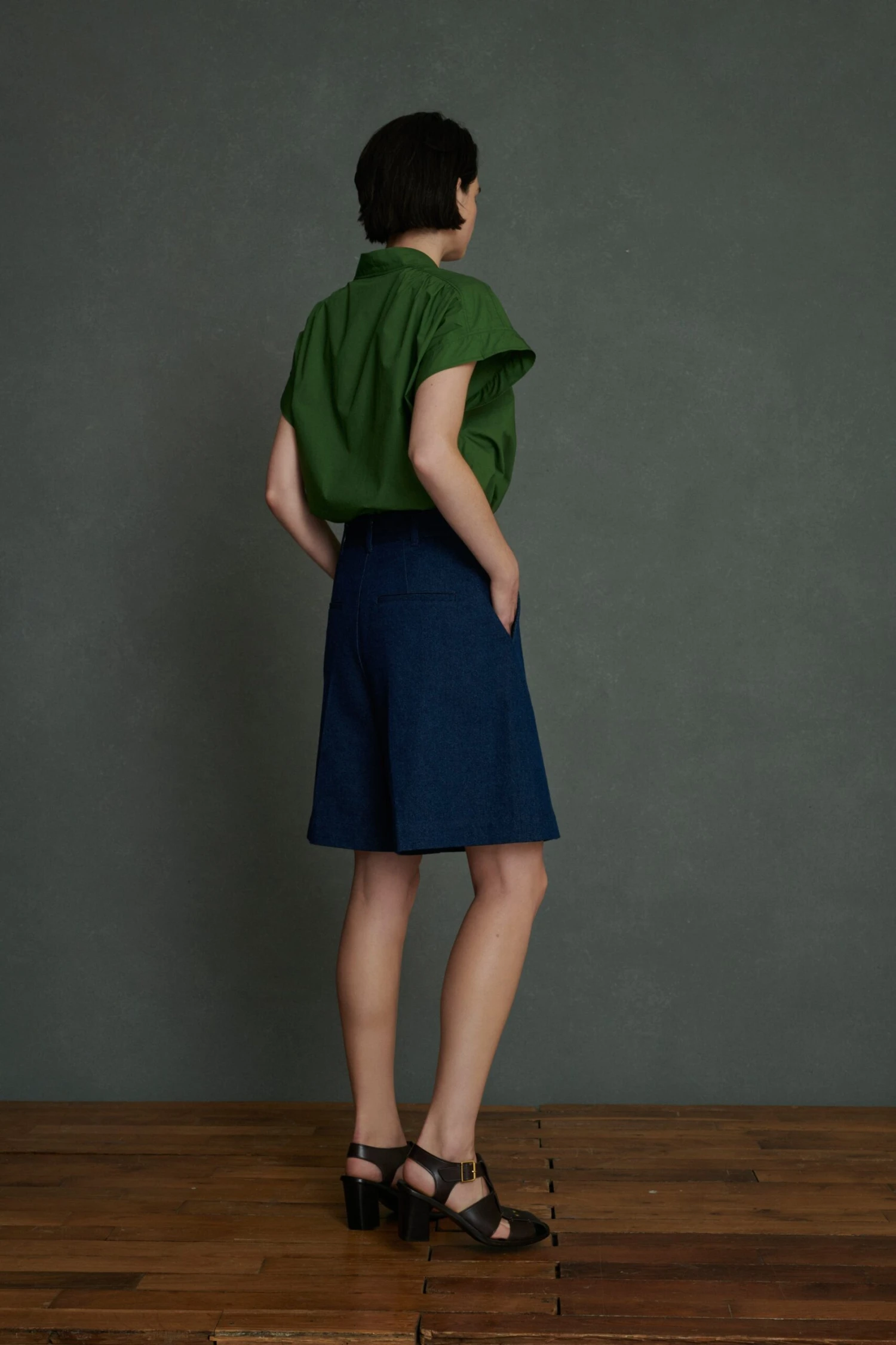 MADAGASCAR est une blouse droite et ample aux manches kimono courtes. Elle dispose de fentes aux côtés et d’une profonde encolure en V soulignée par un empiècement à fronces. La popeline de coton, légère et fraiche, est idéale pour l’été.