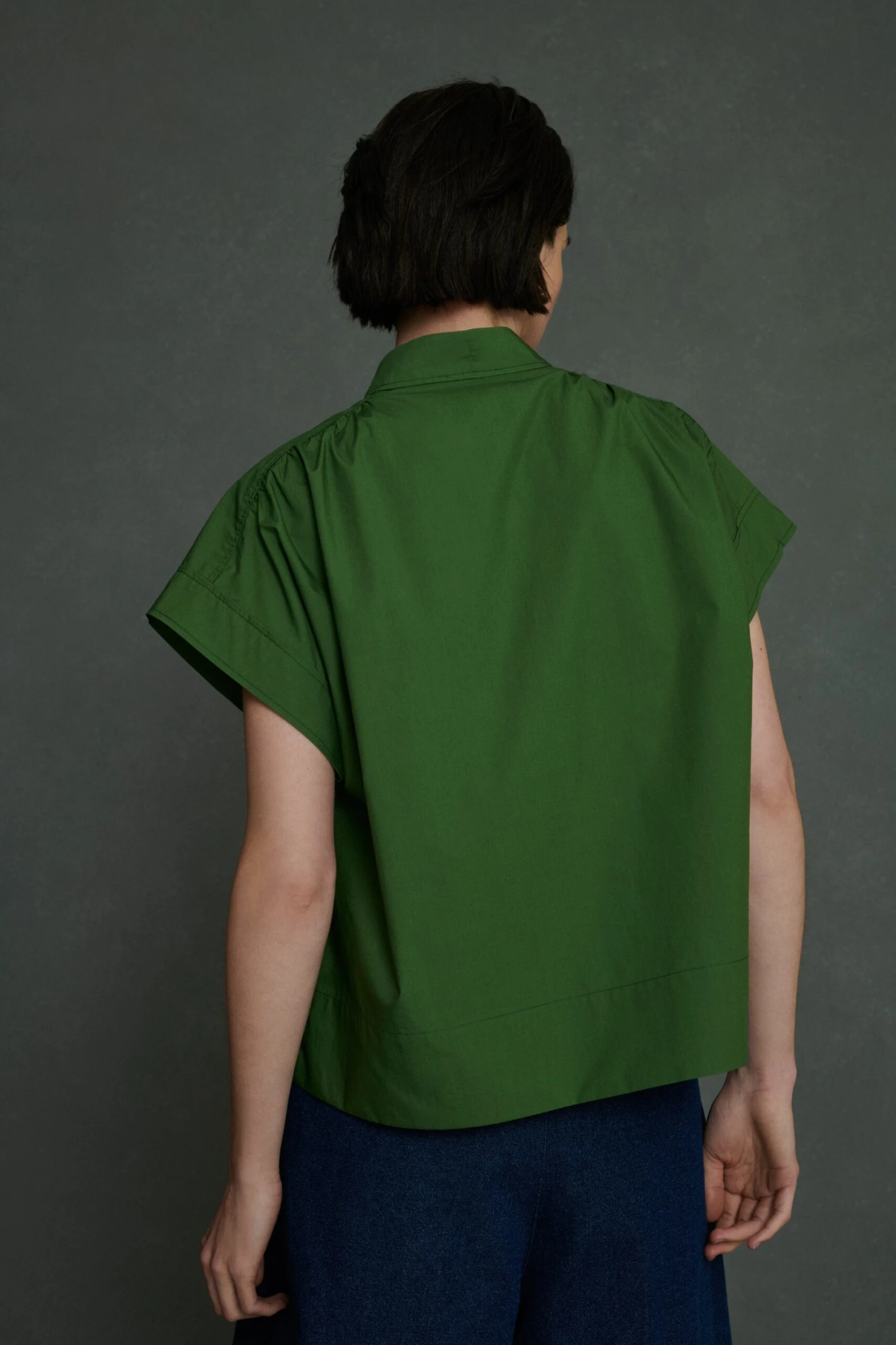 Blouse décolletée en popeline légère verte