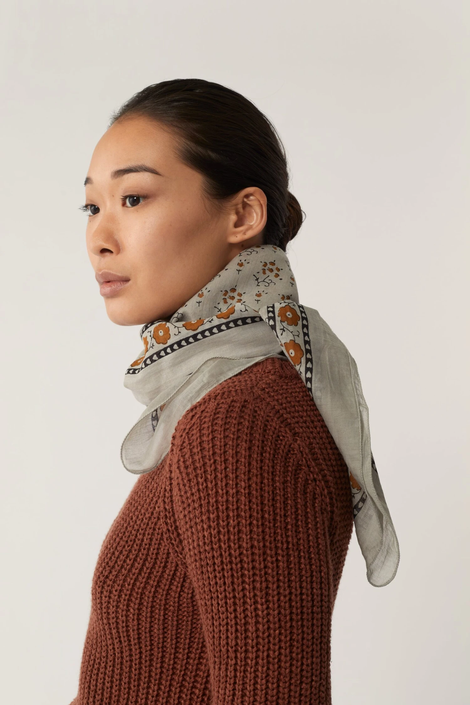 Echarpe en voile de coton imprimé gris/beige