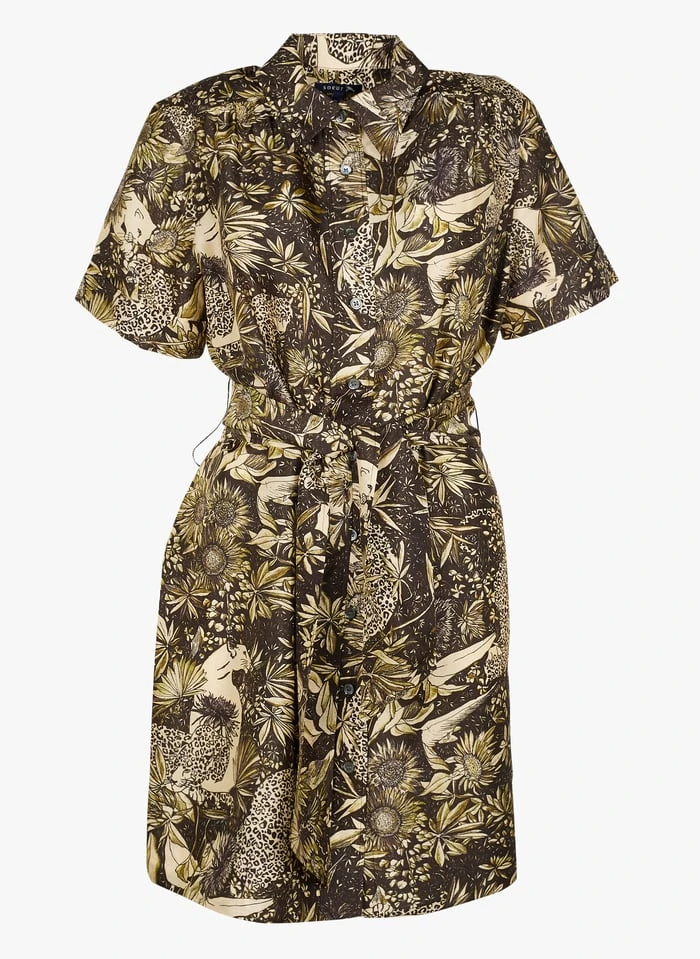 Robe courte col classique imprimée en soie by Soeur pour Femme.