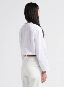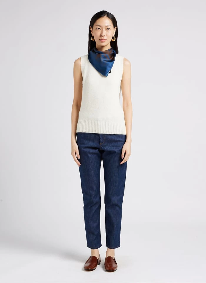 Ce modÚle est présenté avec Jean girlfriend en coton by SOEUR, Foulard en soie imprimé by SOEUR, Mules plates en cuir by SOEUR