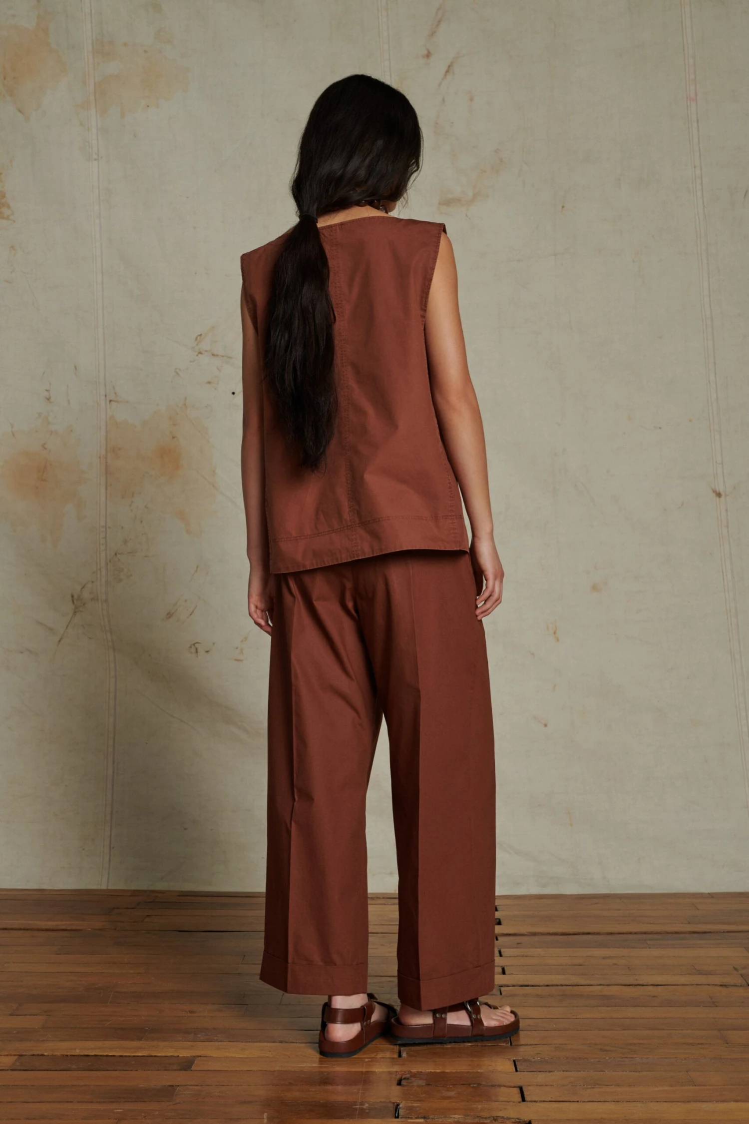 Pantalon Ă pinces en popeline de coton terre battue