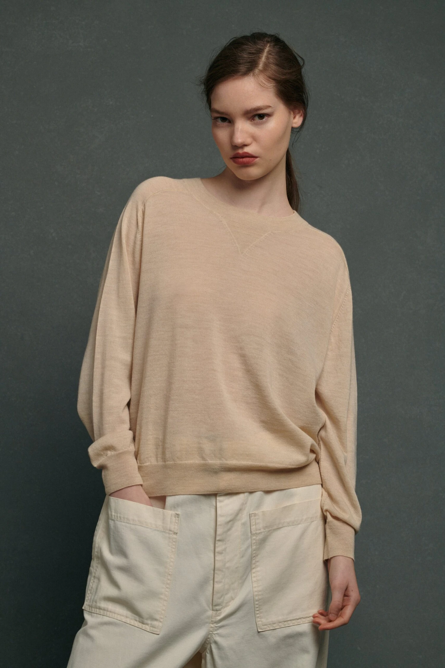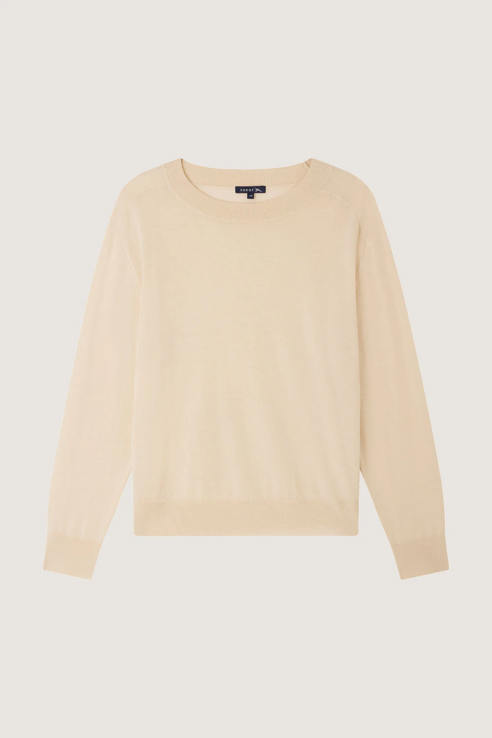 ACE est un pull manches longues à la coupe droite et ample. Tricoté dans une laine mérinos fine et douce, il se porte à même la peau ou en superposition. Il compose un twinset idéal pour le printemps, associé au cardigan IDEM disponible le même coloris.