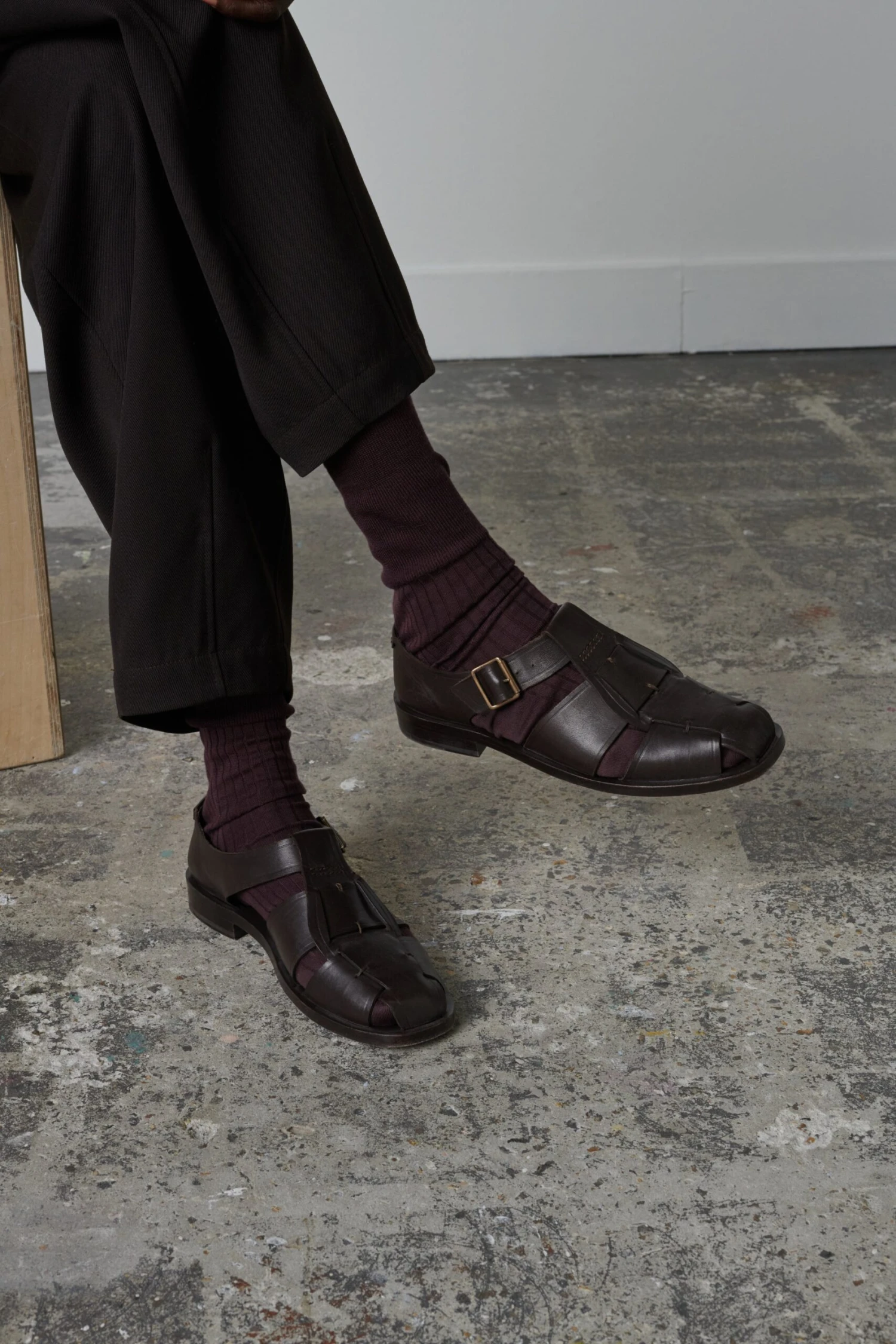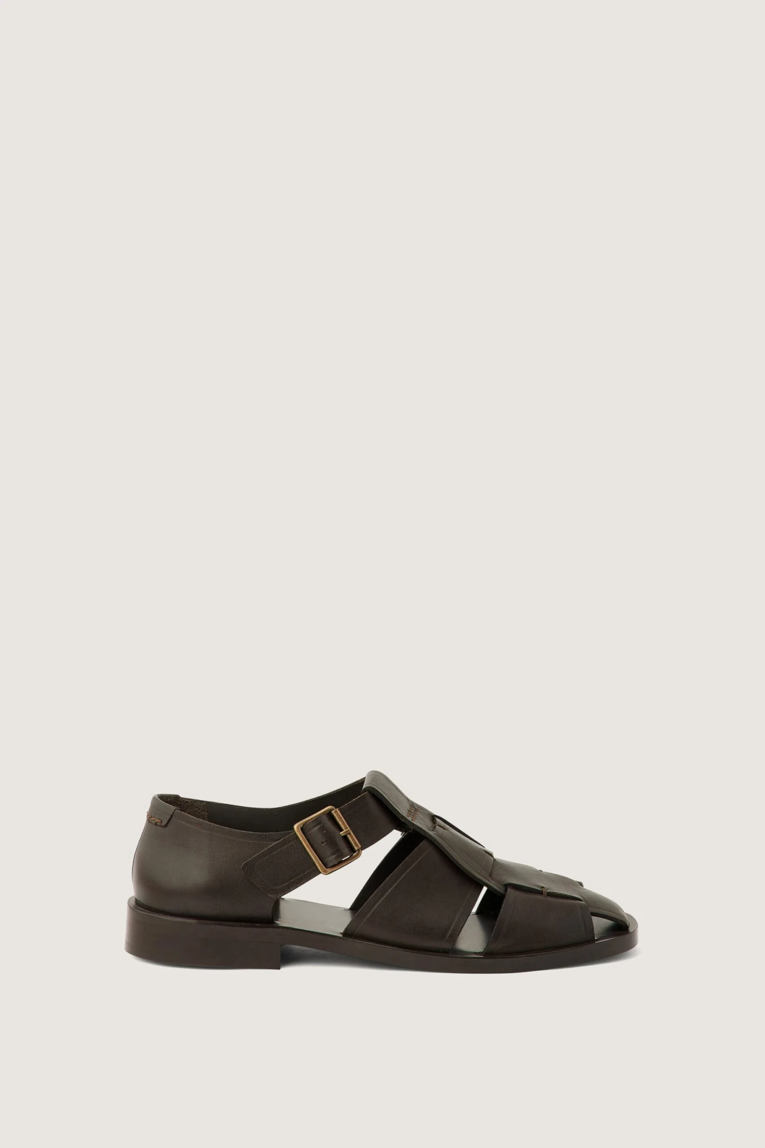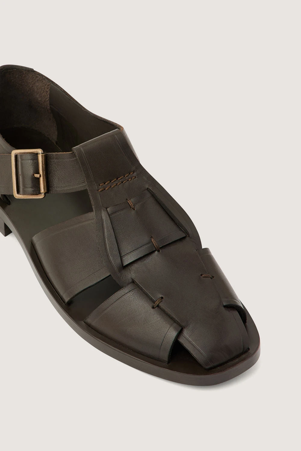 VELIKA est une paire de sandales plates en cuir souple. Elle présente une tige effet cage constituée de bandes de cuir tressées. Un petit talon carré réhausse la semelle. Portées avec une paire de chaussettes épaisses, elles traverseront la mi-saison.