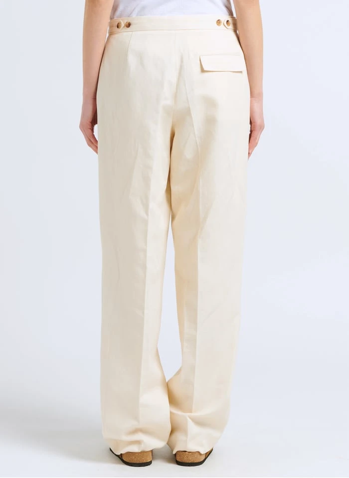 Ce modèle est présenté avec Blouse en popeline de coton imprimée by SOEUR, Sabots plats en cuir by SOEUR