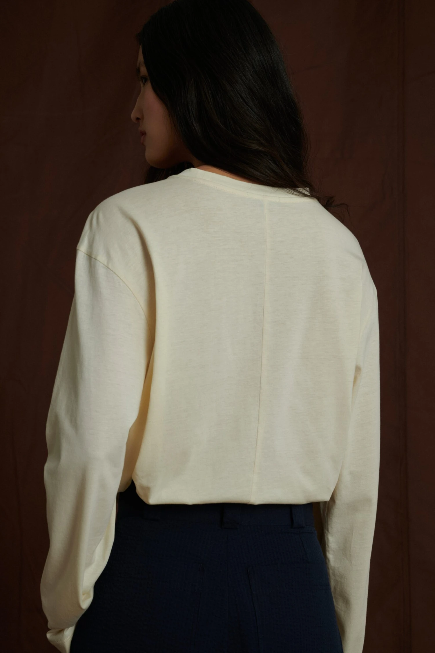 ADELIE E est un t-shirt manches longues en coton extra-fin. Les épaules et le milieu devant sont soulignés par des coutures décalées surpiquées qui apportent du relief. Le coton Supima® offre à ce jersey d’exception une main douce et respirante, comme un tricot « seconde peau ».