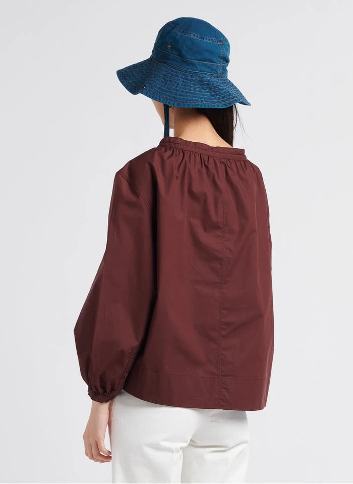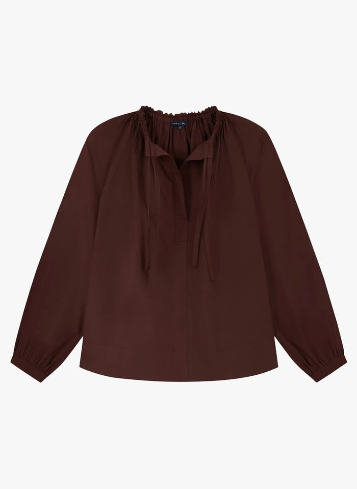 – Encolure froncée et dégagée ajustable par deux liens de serrage